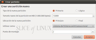 - Utilizar como: ext4 es el sistema que usa Ubuntu 10.10 por defecto.