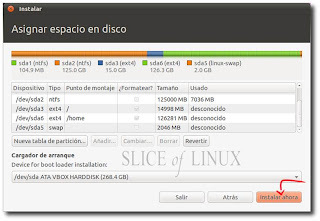 Una vez creadas las particiones hacemos clic en Instalar ahora