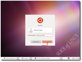 Una vez que se inicia Ubuntu 10.10 nos encontramos con el GDM en el que seleccionamos nuestro usuario, escribimos nuestra contraseña y pulsamos Intro (o pulsamos sobre Iniciar sesión).