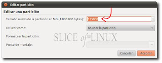 Con esta opción sólo tenemos que indicar el tamaño de la partición que queremos que use Ubuntu y el instalador creará automáticamente dos particiones: